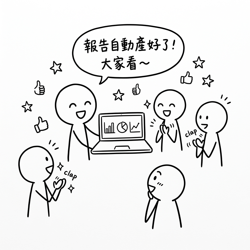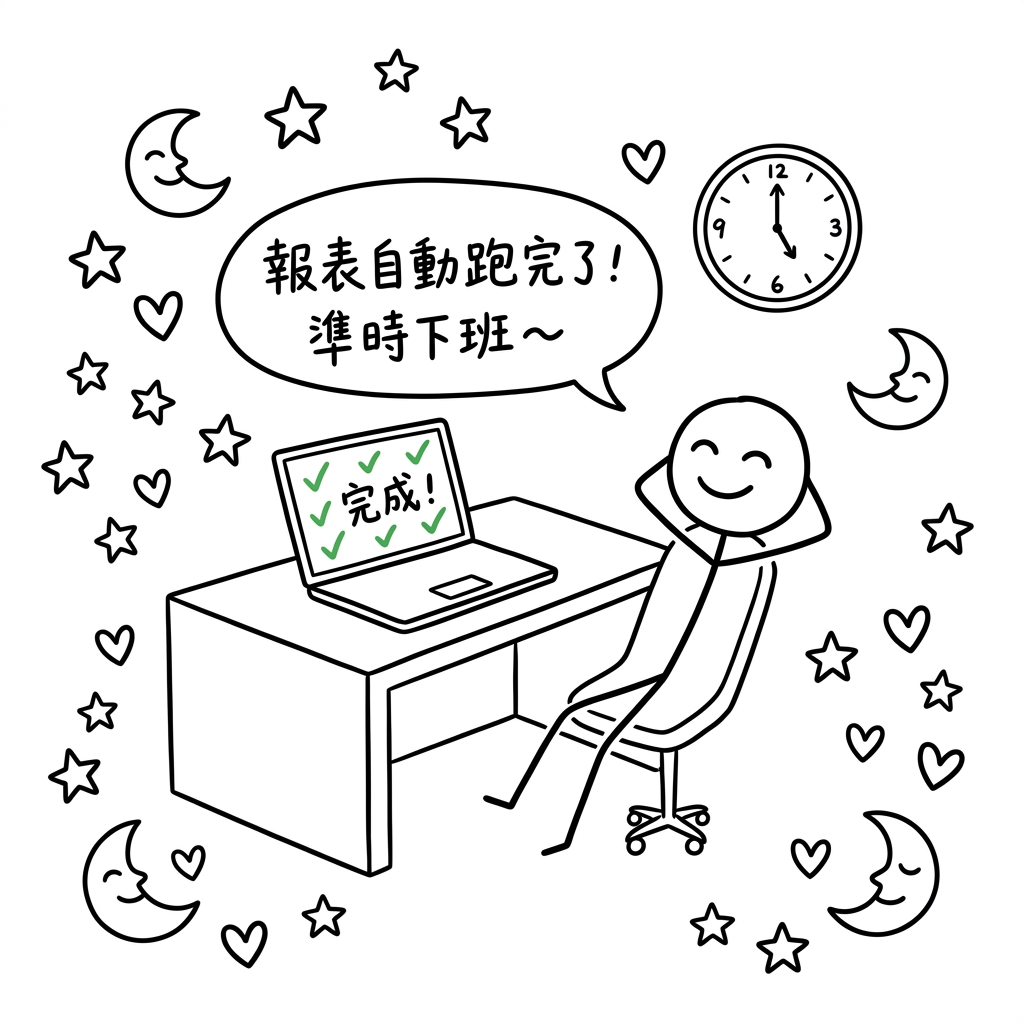 「現在每月報表 10 分鐘搞定,主管還以為我外包」