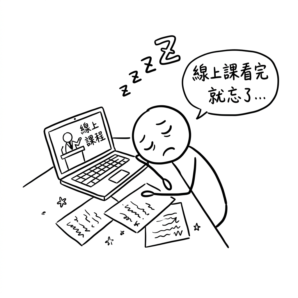 之前花了 NT$5,000 買自動化線上課,影片很長但沒有實作。看完覺得懂了,打開工具一片茫然。沒有社群可以問,最後就放在那邊了。